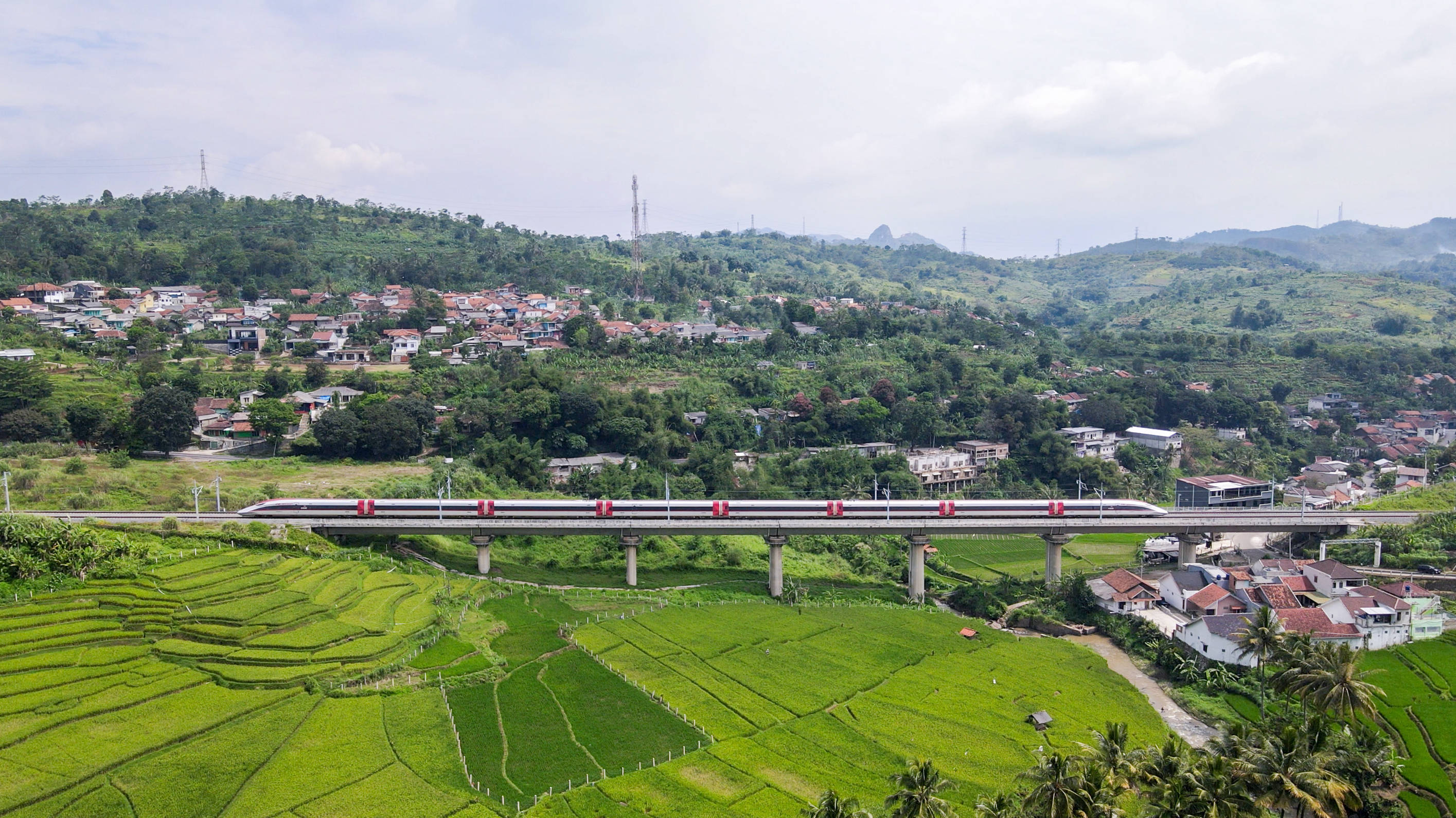 5月20日,在印度尼西亚西万隆,一列高速动车组列车行驶在雅万高铁沿线(无人机照片)。新华社记者 徐钦 摄“便捷省时的雅万高铁已成为我们生活中不可或缺的一部分。”邱烈丰说,雅万高铁拉近了首都雅加达和历史名城万隆的距离,他如今常常到万隆和朋友们见面。