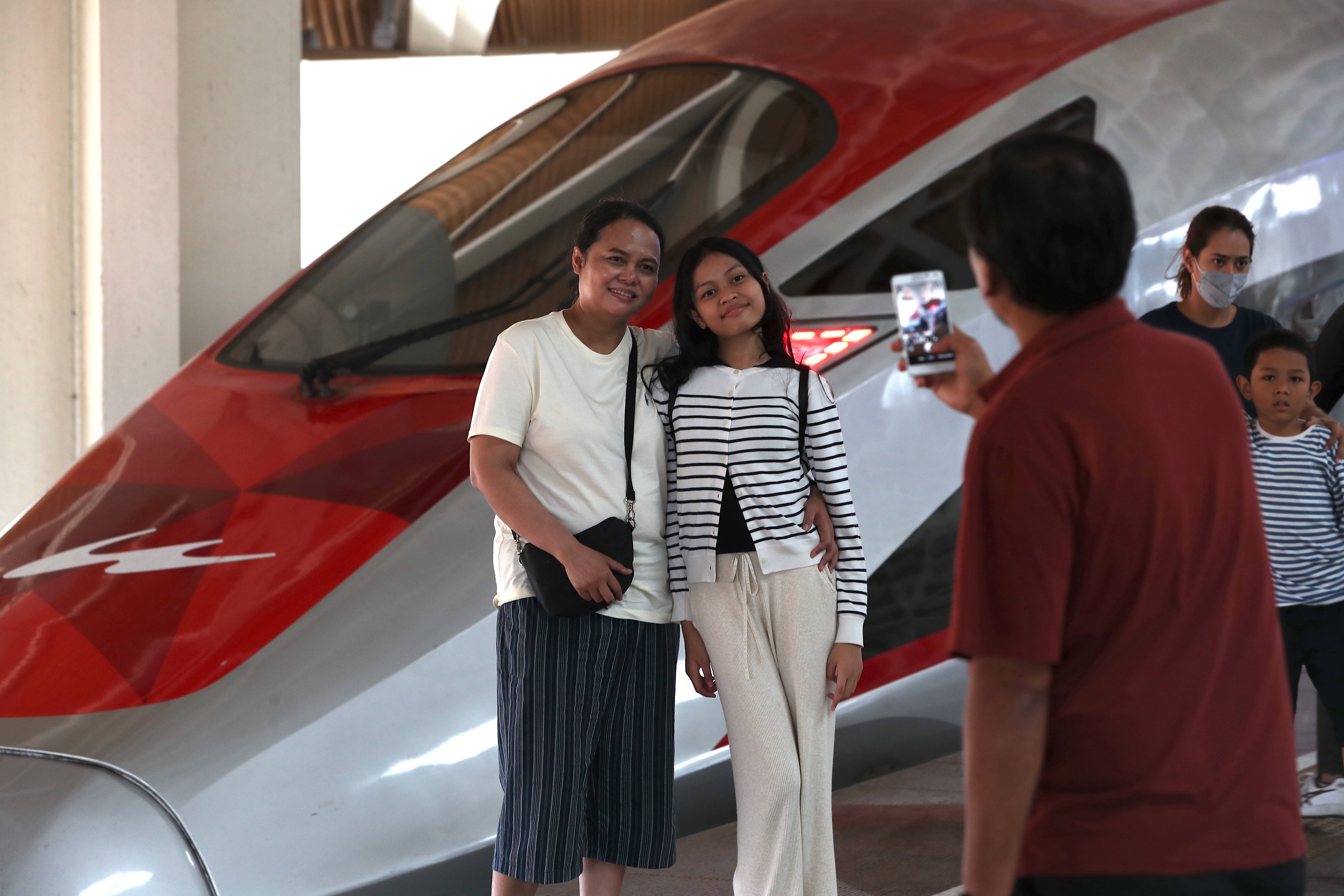 6月19日,在印度尼西亚雅加达哈利姆站站台,两名乘客与雅万高铁高速动车组列车合影。新华社记者 岑云鹏 摄印尼全球发展研究中心主任维罗妮卡·萨拉斯瓦蒂说,雅万高铁体现了习近平主席倡导的普惠包容发展理念。她认为,该项目开启了印尼跨国合作新篇章,实实在在改善了印尼民生,为促进区域经济繁荣作出巨大贡献。